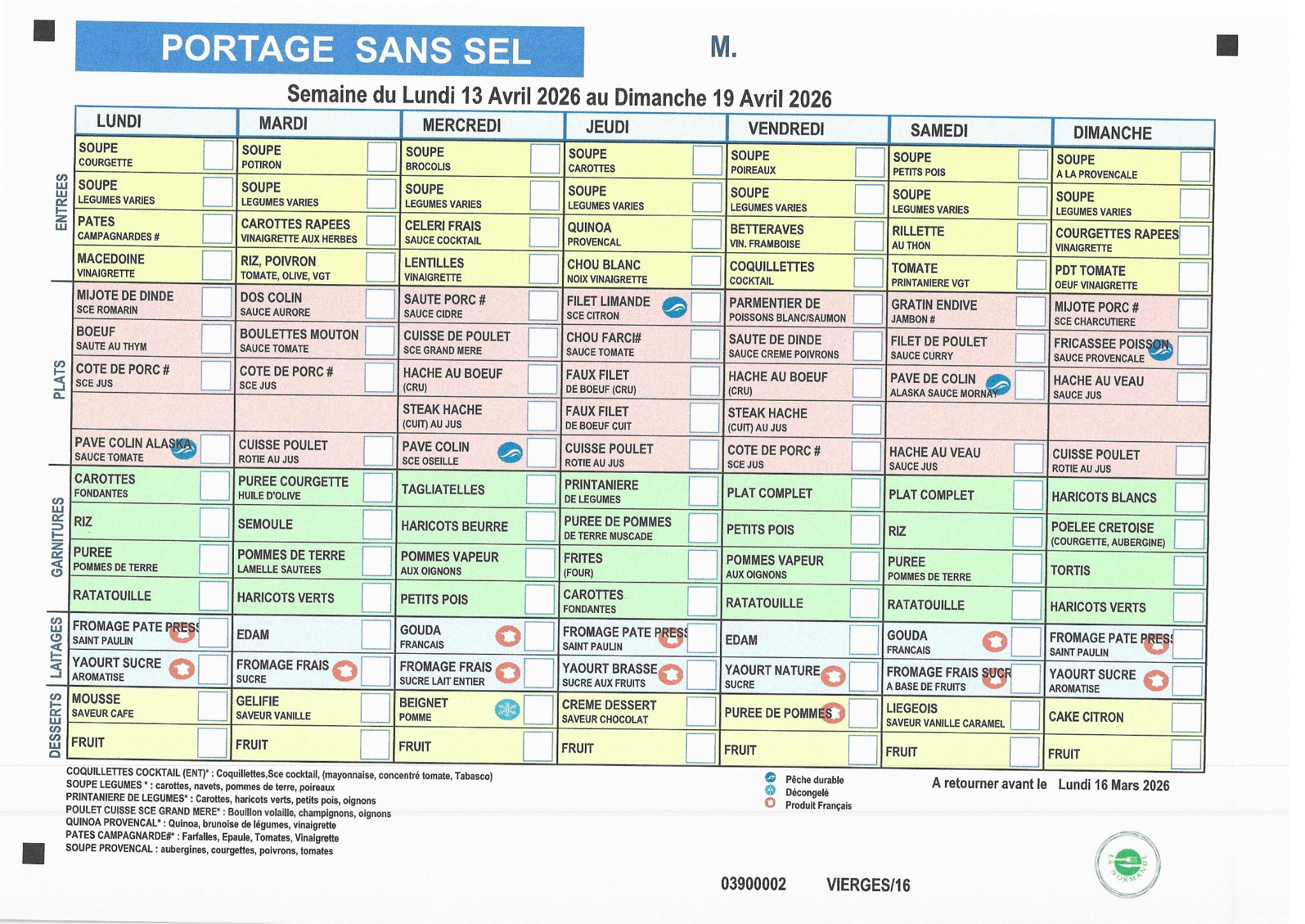 MENUS SANS SEL ET SANS SUCRE