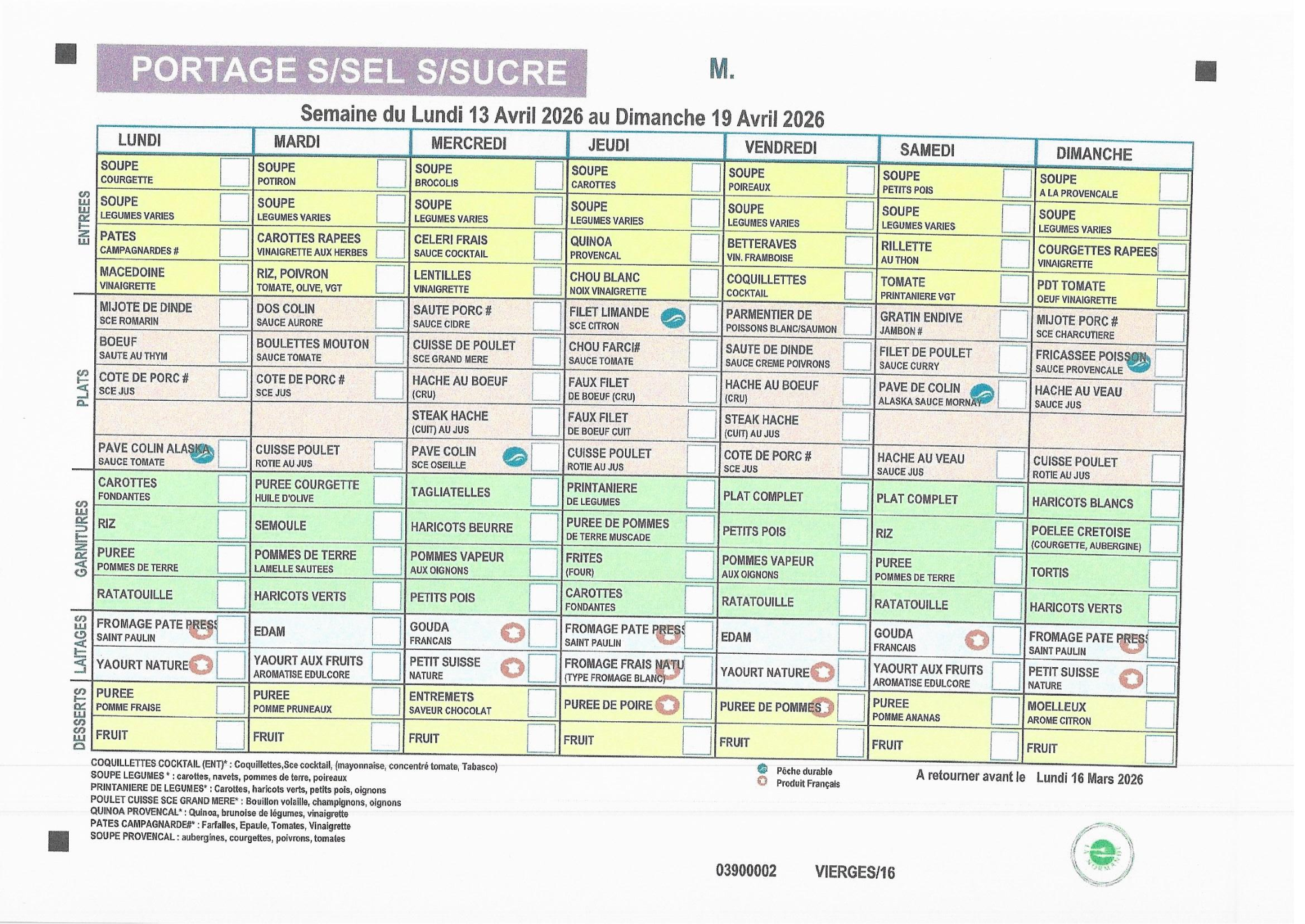 MENUS SANS SEL ET SANS SUCRE